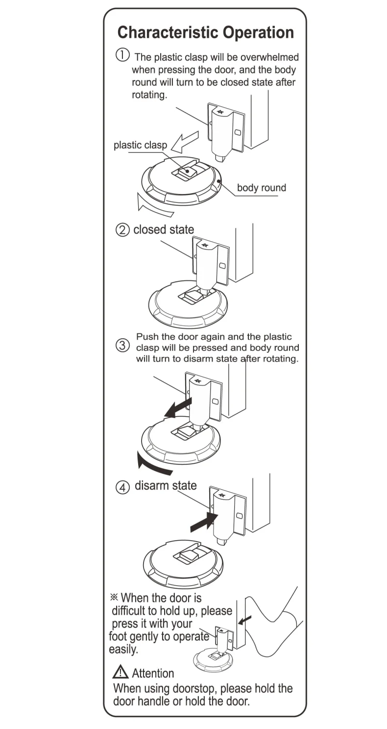 ★ After installation, push the door to a fixed position to fix the door, and also push the door in the same direction to unlock it.